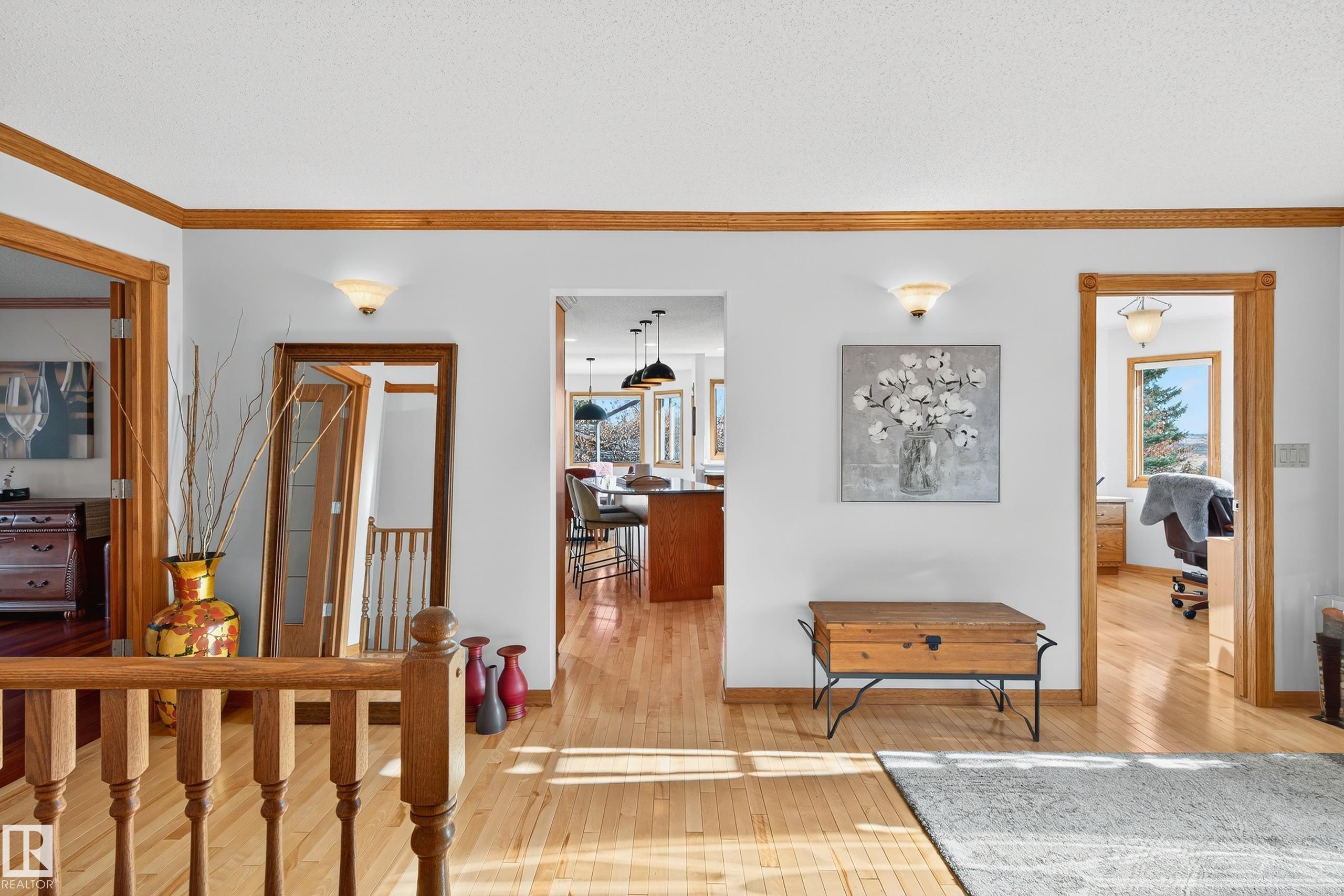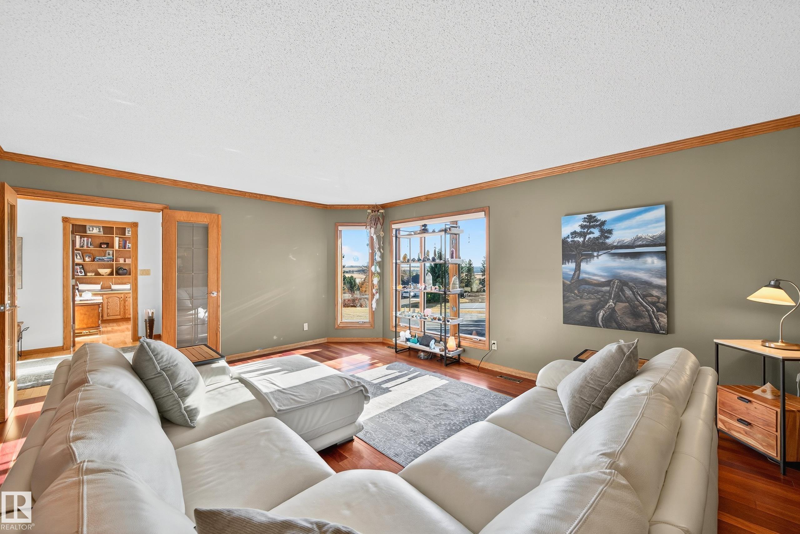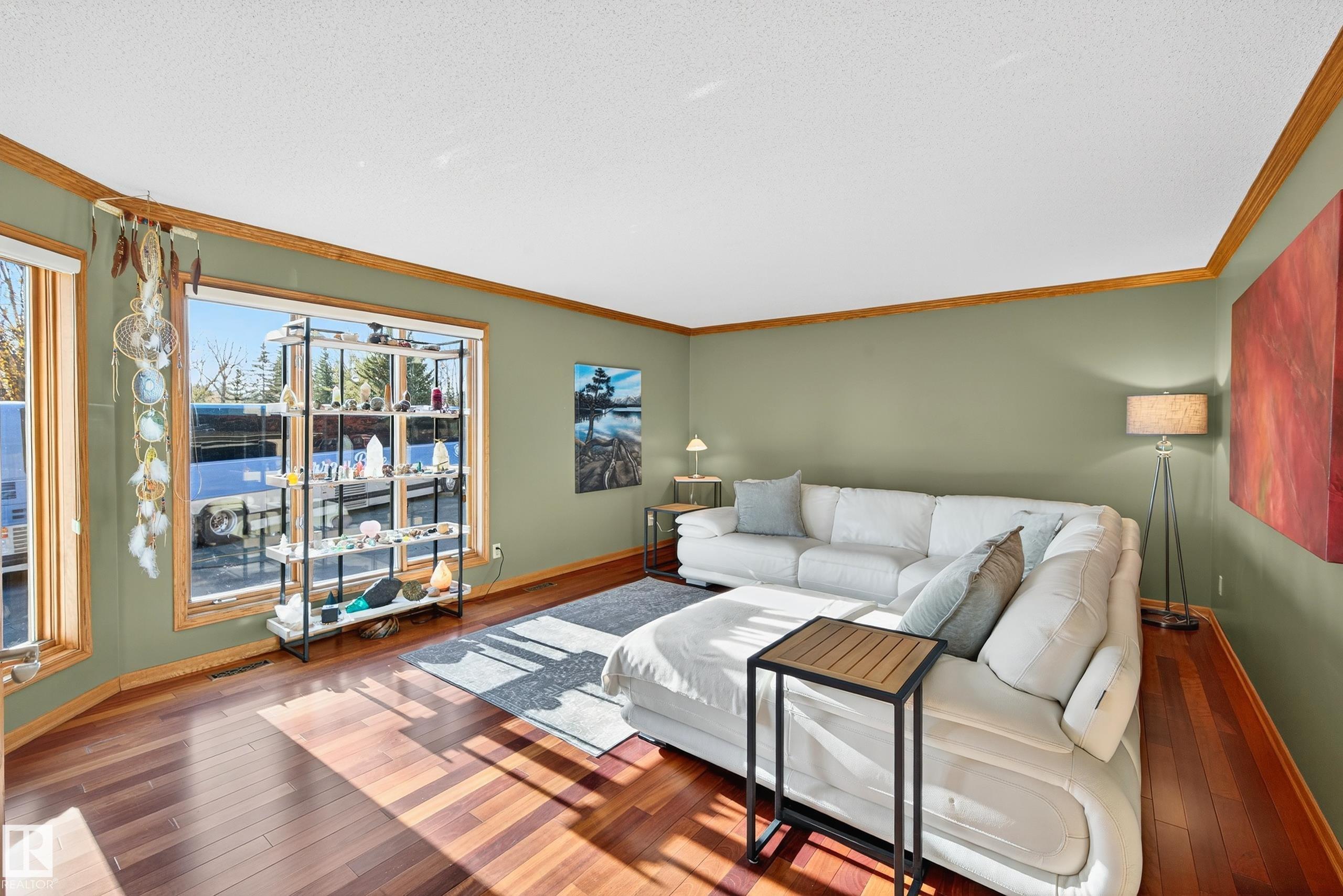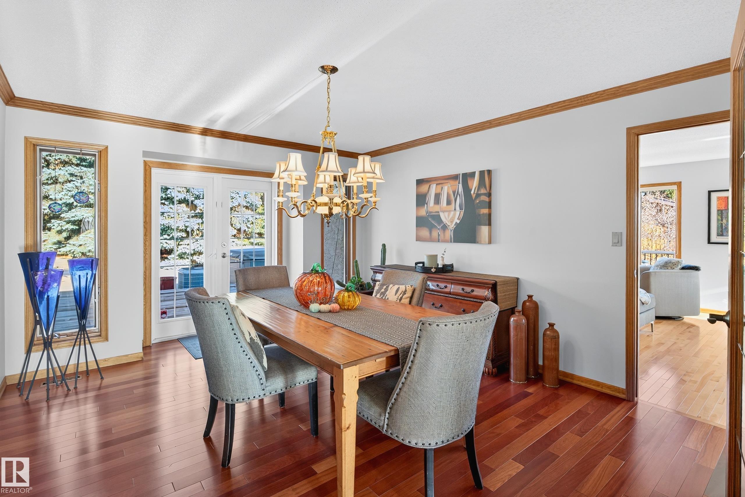 Immaculate 2,100 sq. ft. raised bungalow, set on 1.02 acres with views of the Sturgeon Valley. This home showcases maple hardwood flooring, oak crown moulding, and elegant finishes throughout. The main level features a gourmet kitchen with granite countertops, new appliances and a sunny breakfast nook! A formal dining room with French door entry, a bright living room, and a cozy family room with a gas fireplace & built-in oak shelving. The private den offers a custom oak bookcase, ideal for a home office. T...