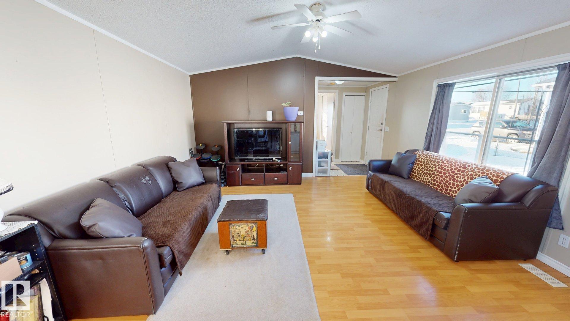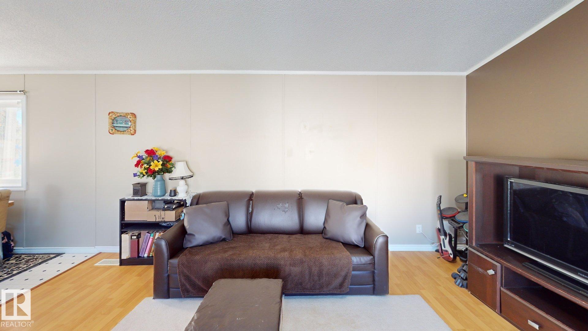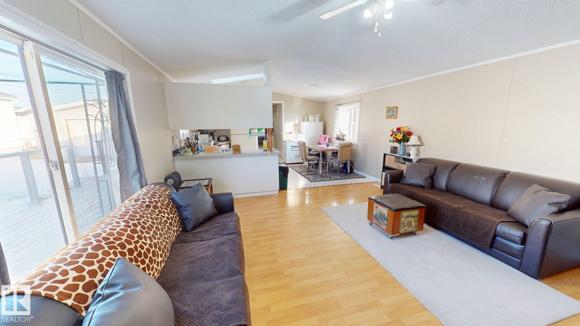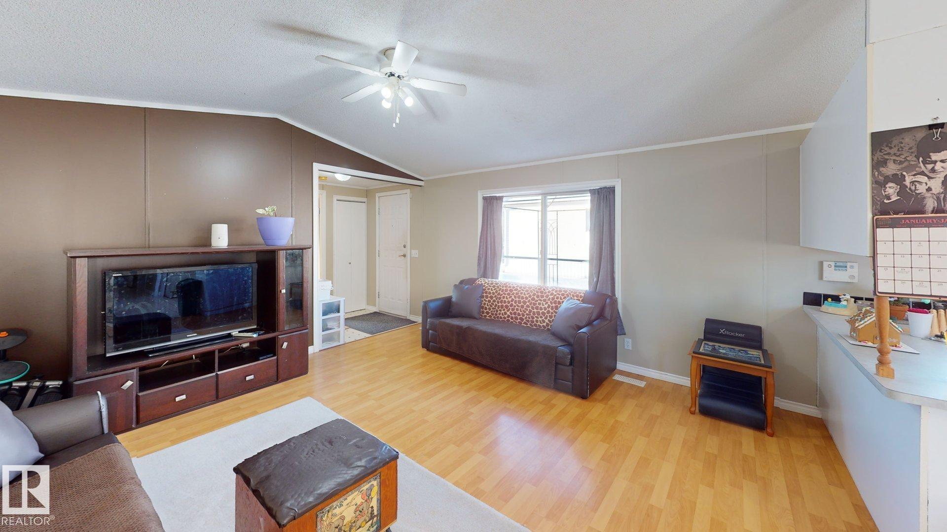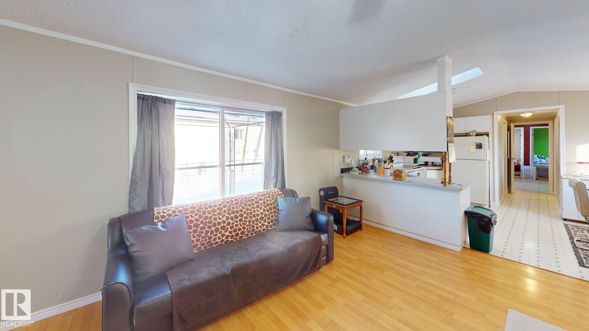 Welcome to this beautifully designed 3 bedroom, 2 bath Moduline home located in the desirable Countrystyle Park near Drayton Valley. This home stands out with a unique & appealing floorplan, featuring both a bright living room & a separate family/play room, perfect for growing families or entertaining. The spacious primary bedroom is privately situated at one end of the home & includes a 4-piece ensuite. At the heart of the home, the open living area & kitchen feature large windows, a skylight, all overlook...