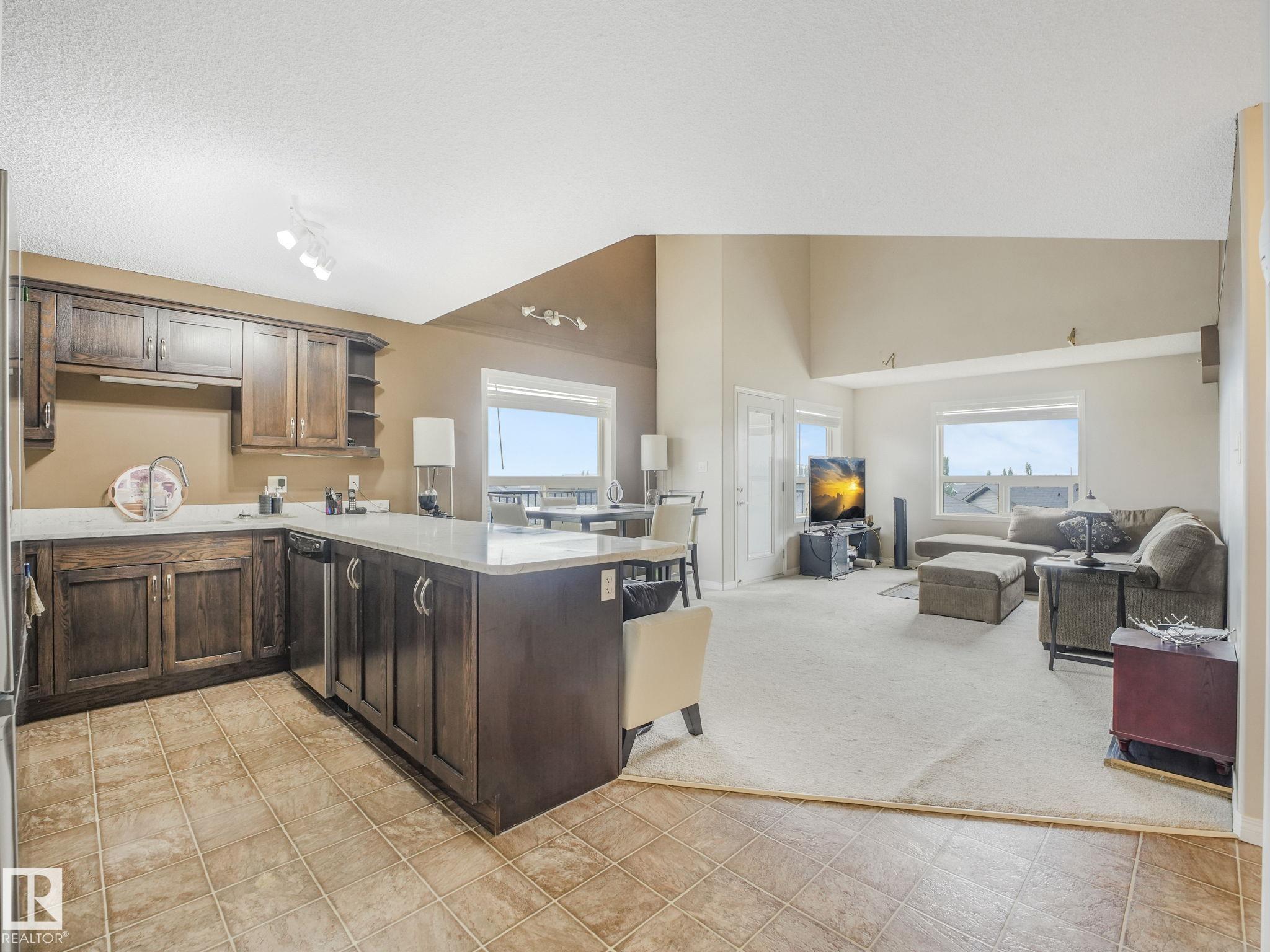 Welcome to this stunning top-floor, end-unit condo featuring 15-foot ceilings and a rare two-level loft layout! This beautifully upgraded home offers 2 spacious bedrooms, 2 full bathrooms, and a renovated kitchen with upgraded appliances, a breakfast bar, and plenty of cupboard space. The bright and airy open-concept living and dining area flows seamlessly onto a private balcony with an impressive view. Upstairs, you'll find a loft-style family room overlooking the main level — a rare find that adds extra l...