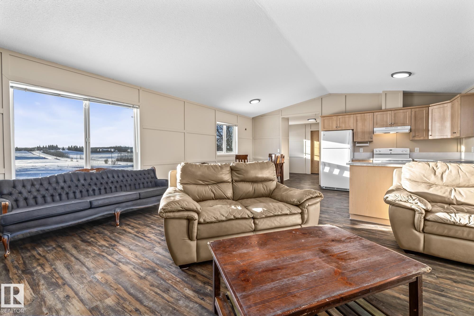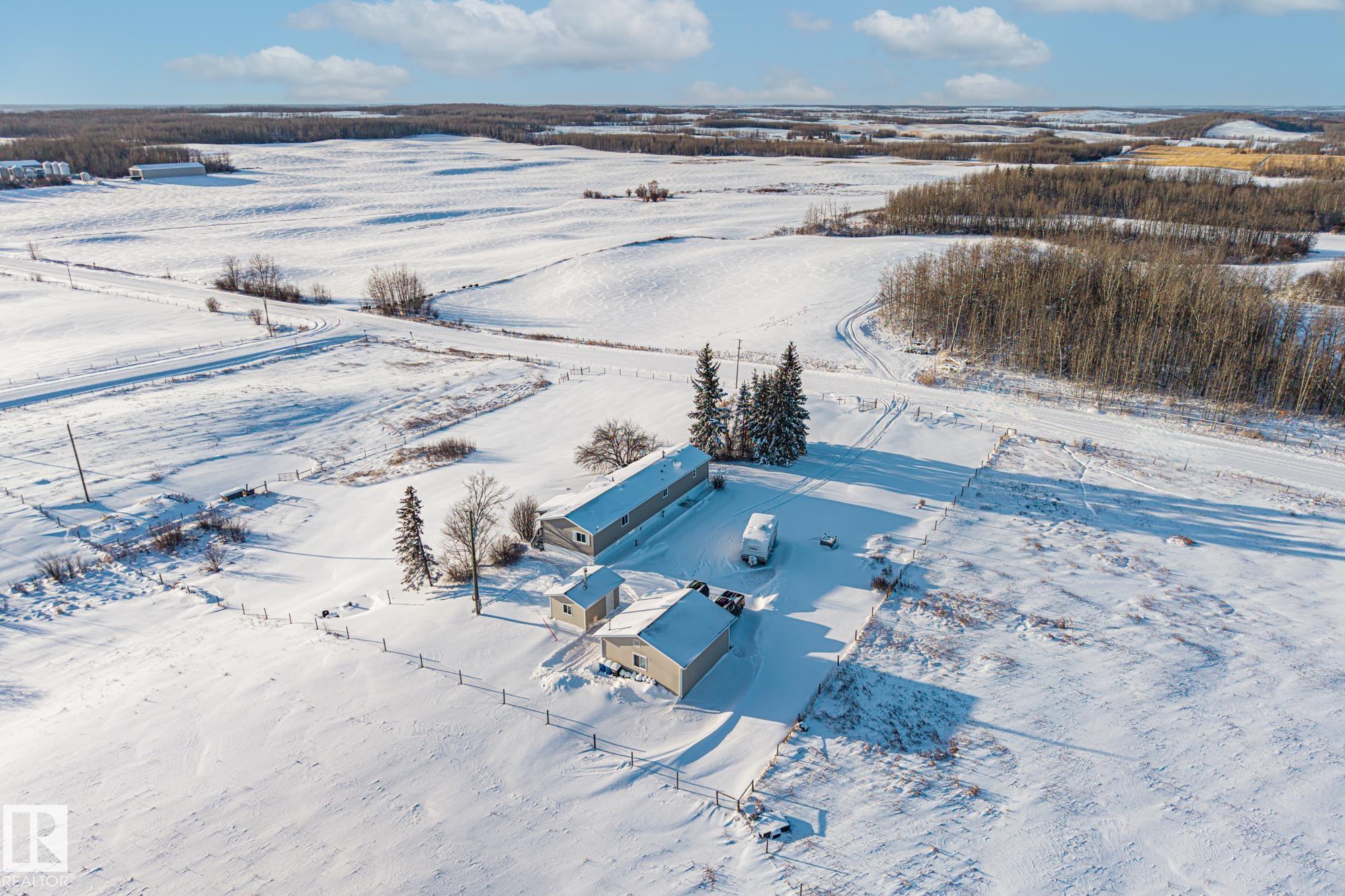 Escape to peace and privacy with this quiet, fully fenced, secluded corner-lot property set on 3.06 beautiful acres with no nearby neighbours. This home offers the perfect balance of privacy and convenience, with school bus pickup available nearly right at the gate. Inside, you’ll find just under 1,600 square feet of comfortable living space featuring a welcoming open-concept kitchen and living area, highlighted by a striking vaulted ceiling that adds character and a sense of spaciousness. The layout is ide...